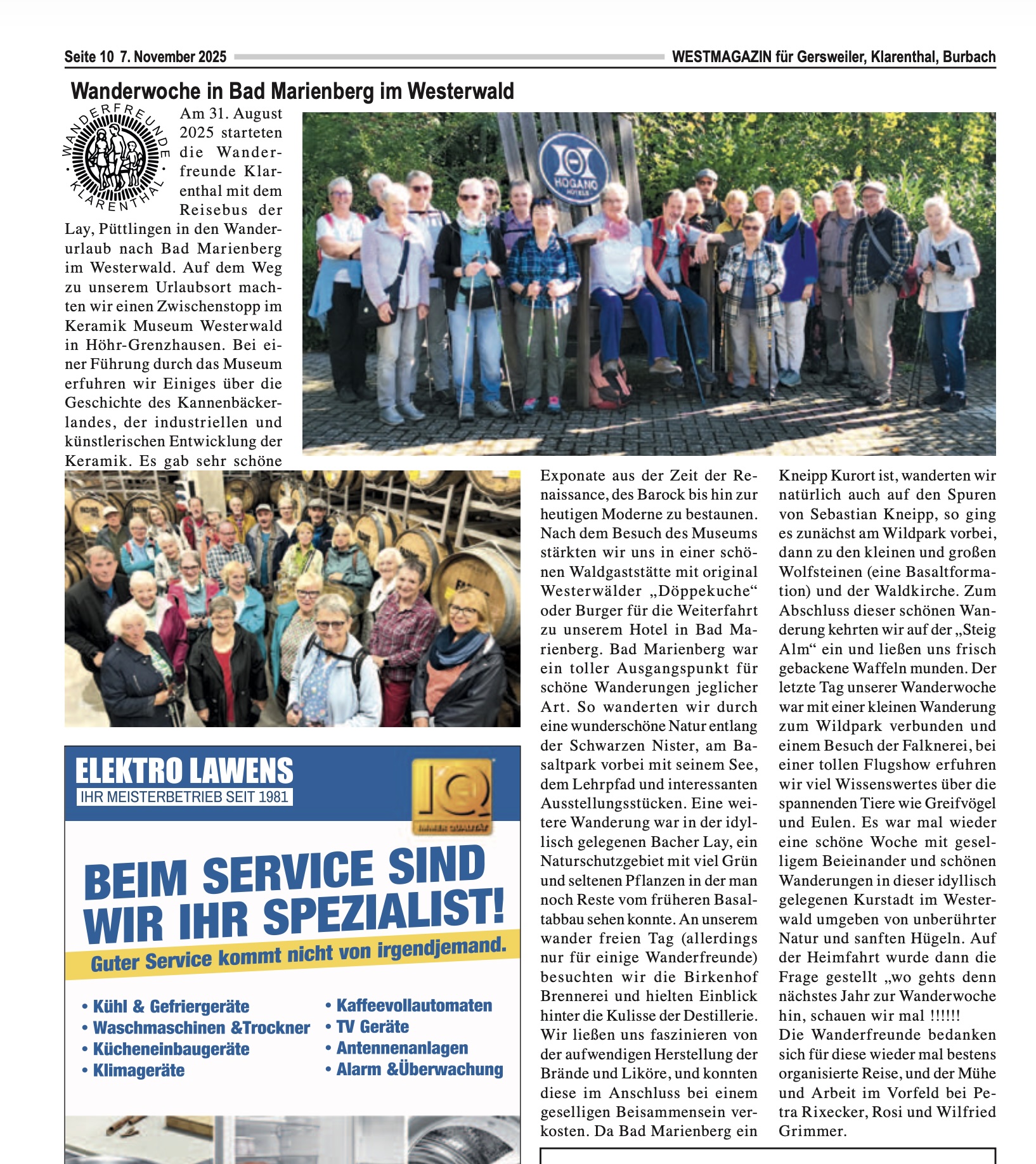 Wanderwoche Bad Marienberg (Auszug Westmagazin) Grillfest und Spende Unicef (Auszug Westmagazin) Mitgliederversammlung (Auszug Westmagazin)